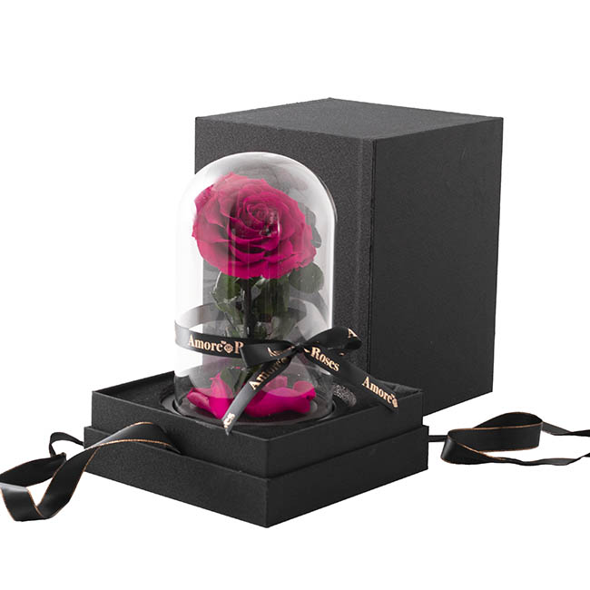 Our Amore Forever Rose Mini Preserved Rose Cloche in Hot Pink offers a timeless expression of love and beauty that lasts indefinitely. Encased within an elegant glass dome, this meticulously preserved rose captures the essence of romance and sophistication.