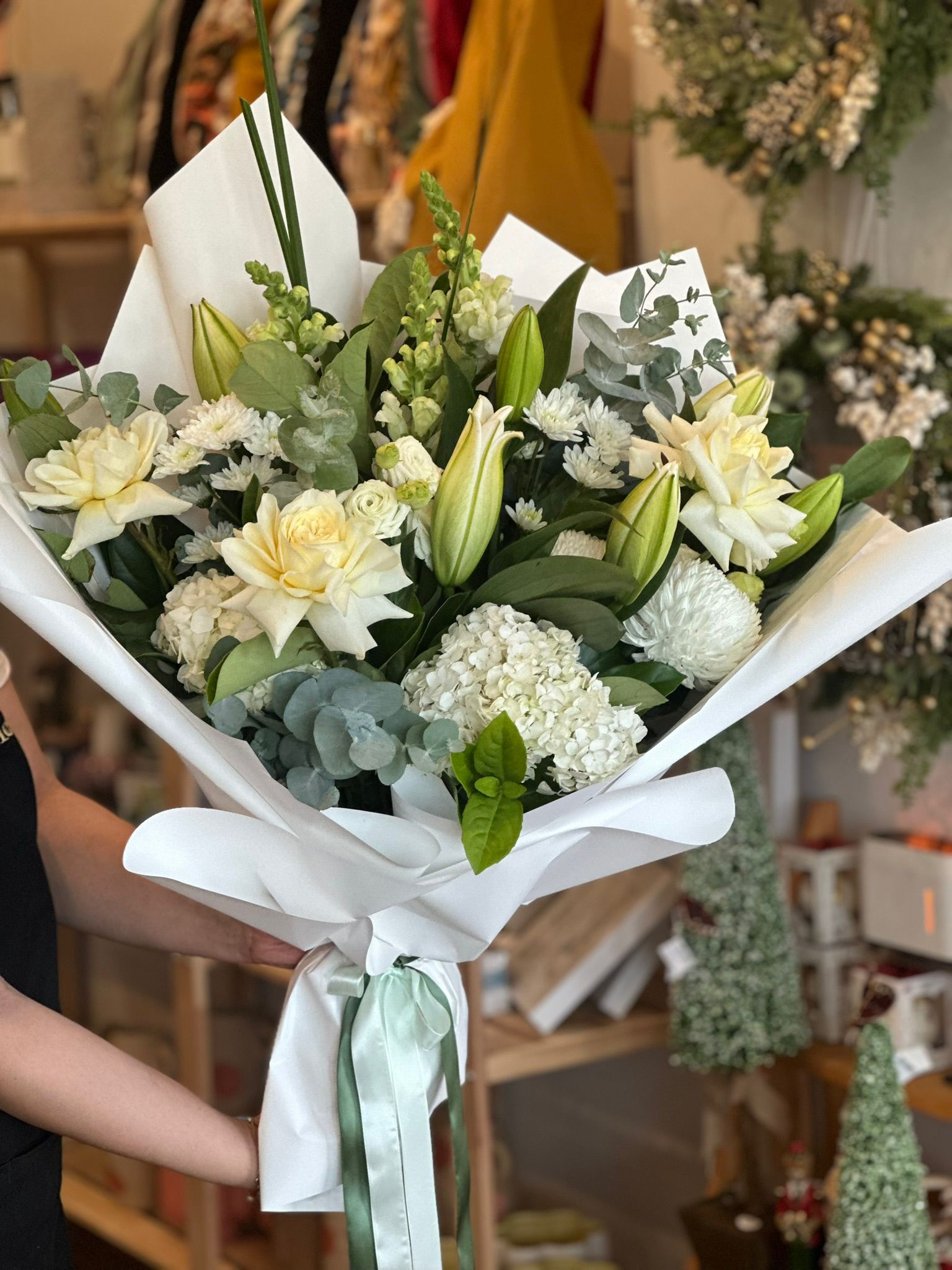 Experience the timeless beauty of our White Bouquet! Perfectly pure and elegantly arranged, this bouquet is a stunning choice for any occasion. Whether you’re celebrating a wedding, expressing sympathy, or simply wanting to convey your love, the delicate white blooms symbolize sincerity and grace. Each bouquet features a selection of fresh white flowers, hand-picked to ensure a soft and sophisticated display.