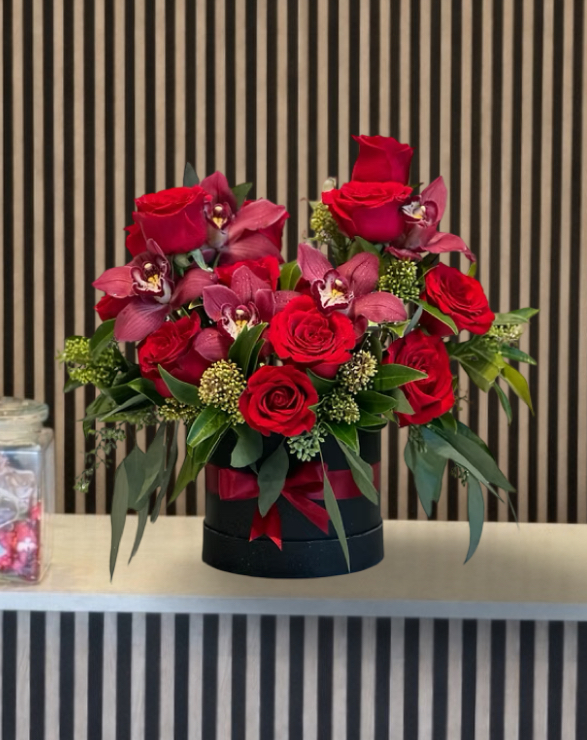 An opulent blend of crimson roses and exotic orchids, designed to make a statement of timeless luxury.